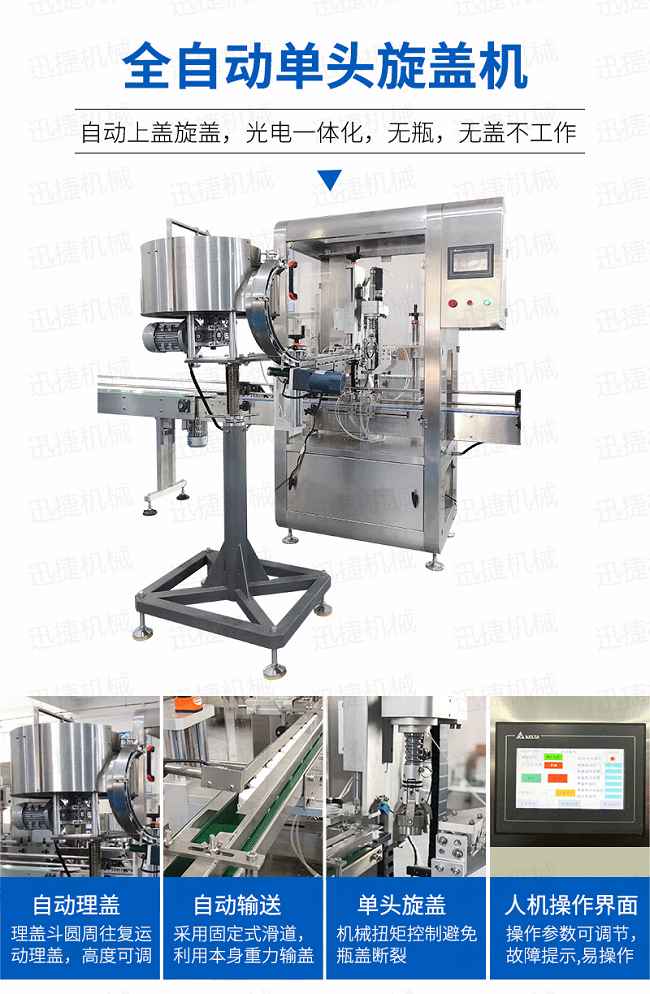 自動旋蓋線是我司在吸收技術的基礎上研發的一款新型自動生產線,特別適用于中小劑量液體灌裝和各種圓形瓶蓋,泵頭蓋,噴頭蓋,鴨嘴蓋,噴槍的鎖蓋。同時適用各種材質圓形、異形瓶,各種規格的瓶子灌裝旋蓋。微電腦自吸蠕動泵自動定量、氣動感應定位灌裝(根據需要也可不選配升降灌裝結構)等。具有灌裝平穩、操作簡單、高速分裝、旋蓋等優點。廣泛應用于醫藥、日化、飲料,酒水等行業。